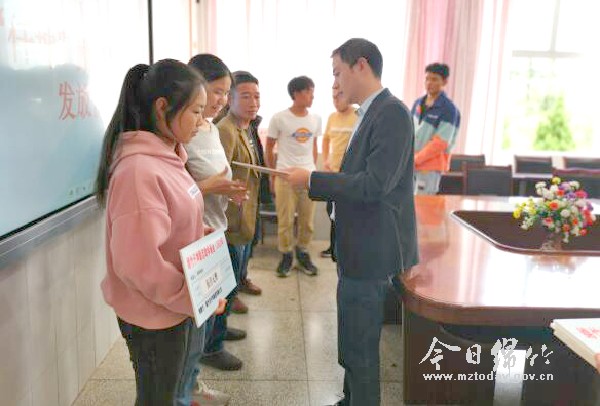 本刊消息 近日,仟坤集团有限公司“仟坤”励志助学基金发放仪式在甘洛中学举行,甘洛县10名成绩优异的贫困大学新生喜获基金资助。 据了解,仟坤集团积极响应市委、市政府号召,发挥民营企业的社会责任和担当,2018年,与甘洛县教体科局签订《“仟坤”励志助学基金协议》,成立了“仟坤”励志助学基金,决定为该县贫困学生连续三年每年发放5万元助学金,用于资助10名大学新生。截至目前,该公司已发放“仟坤”励志助学基金15万元,资助贫困大学新生30名。 受助学生代表罗俊从态度、方法、目标、感恩四个方面向大家分享了自己的获助感言。 绵竹市对口帮扶甘洛县前线指挥部、甘洛县教体科局、甘洛县学生资助管理中心相关负责人参加发放仪式。