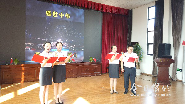 本刊消息 9月29日下午,新市镇卫生院举行了“迎中秋·庆国庆”中华经典诵读讲演活动。 当天下午,活动在合唱《我的中国心》中拉开序幕。随后,器乐演奏《但愿人长久》、朗诵《中华少年》《祖国颂》,手语表演《国家》、角色扮演《欢乐小人物》等精彩节目轮番上演,台下观众频频拿出手机留下精彩的一幕幕。医护人员把对党和祖国的热爱之情融入到节目中,表达了白衣天使祝福新中国71周年华诞的心声。
