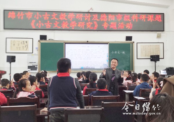 本刊消息 为提高课堂教学水平,进一步提高学生对语文科目的兴趣和积极性,10月20日,由市师培中心、大西街小学片区联合举办的小古文教学研讨暨德阳市级科研课题《小古文教学研究》专题活动在土门学校举行。来自大西街小学片区的8位教师在本次活动中进行了小古文课堂教学展示和专题讲座。 活动中,土门学校曾丽老师在执教的《司马光》一课中,创设了轻松愉悦的学习氛围,培养学生对文言文的感受、理解和欣赏能力。金花学校苟馨月老师执教《鸦狐》一课,通过角色扮演进行故事创编,让学生体会古文的凝练美。而大西街小学晋熙校区肖念华执教的《小古文一组》紧紧围绕培养学生语文核心素养为目标展开教学,利用已有的学习古文的方法引导学生展开想象,读出韵味,让小古文教学做到有情有趣......参与授课的教师们教学基本功扎实,课堂驾驭能力强,有效激发了学生的学习兴趣,使师生之间的互动精彩纷呈。 当天,师培中心、大西街小学、大西春溢校区、大西板桥校区、土门学校、广济学校、金花学校、玉泉学校相关负责人参加研讨活动。 (图由学校提供)