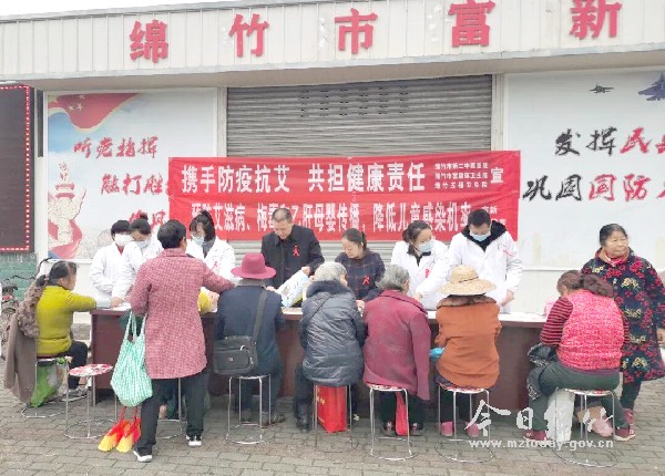 本刊消息 为提高广大群众对艾滋病的认识,11月30日,市第二中医医院联合富新镇政府开展了以“携手抗疫防艾 共担健康责任”为主题的艾滋病防治宣传活动。 在活动现场,医护人员通过悬挂宣传横幅、发放宣传单等形式,为过往群众讲解艾滋病的传播途径、危害及避免艾滋病毒感染的相关措施,积极倡导大家杜绝不良的生活习惯,主动进行艾滋病咨询检测,做到早发现,早治疗。 (图由医院提供)