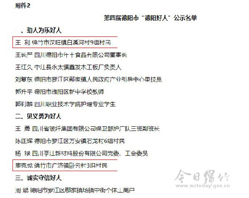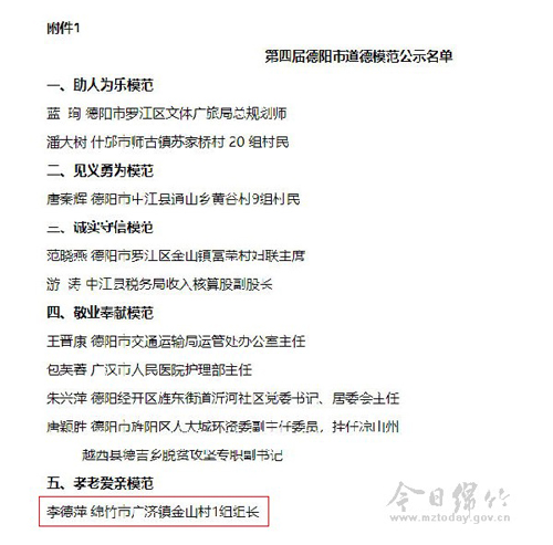 第四届德阳市道德模范、“德阳好人”名单公示 绵竹8人上榜