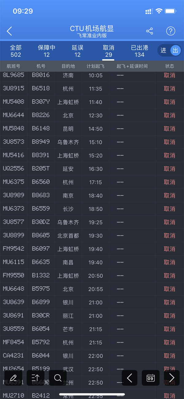 据统计,今天双流机场计划出港航班502个,计划进港航班512个。截至上午9时30分,取消进、出港航班共59个。旅客若需了解具体航班信息,可拨打双流机场热线028-85205555,或与所乘航班的航空公司联系。 另外,为积极配合成都做好新型冠状病毒肺炎疫情联防联控工作,昨晚国航、东航、川航、成都航空、西藏航空等航空公司相继公布了涉及成都航线的旅客客票退改方案,临时调整了旅客客票退改规定,对符合条件的旅客客票予以免费退票、更变等。