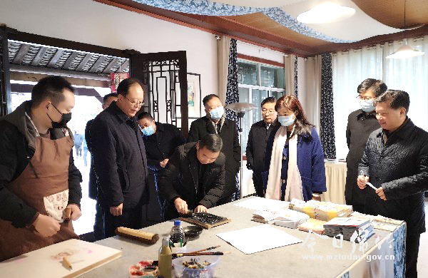 本刊消息 12月9日上午, 河南省人大常委会党组副书记、副主任马懿一行来到我市,就白酒产业发展和乡村振兴工作进行参观考察。德阳市人大常委会党组书记、主任卢也,德阳市人大常委会党组成员、副主任刘龙春,绵竹市委书记李栋,绵竹市人大常委会党组书记、主任张映琪陪同考察,并就相关情况进行介绍。 当天,马懿一行先后到剑南春集团酒史博物馆、包装中心二期工程、酿酒车间和孝德镇年画村年画展示馆、“乡遇画里”文创社区等地,通过观看公益宣传片、听取情况介绍、实地参观等方式,就绵竹白酒产业发展、乡村振兴工作等情况进行了解。 剑南春集团酒史博物馆收藏和展示了从南齐到现代长达1500余年与剑南春有关的文献资料和酒史文物。在智能化自动化白酒包装中心,一瓶瓶水晶装剑南春经过洗瓶、灌装、质检、包装等各个环节后被送到立体仓库,现场一派忙碌,生产井然有序。马懿一行边看边交流,详细了解了剑南春的悠久历史和独特的白酒文化以及酒类研发、生产、经营等情况,对该企业始终坚持传统工艺与现代科技完美结合,用品质助力自身不断发展的做法给予高度赞誉。 来到孝德镇年画村年画展示馆,马懿一行被一幅幅色彩斑斓的年画作品所吸引,他们驻足欣赏的同时,还与年画艺人亲切交谈,对绵竹年画的特点、历史、传承以及年画制作流程等表现出浓厚的兴趣。在“乡遇画里”文创社区,跃然于白墙上的年画娃娃和悬挂在村民家门口的家风家训展示牌,形成了一道靓丽独特的风景线。穿行于竹林小院、年画巷、陈兴才故居、流云阁画坊、二十四孝林等地,马懿一行充分感受着绵竹年画的独特魅力以及乡野自然之美和淳朴民风之美。他们详细了解我市乡村文化振兴和年画产业发展等相关情况,并对我市用好绵竹年画这张名片,推动文化产业创新,不断延伸年画产业链,促进文旅融合发展助推乡村振兴的做法和成效给予充分肯定。 在参观考察中,马懿指出,绵竹在改革创新、转型发展中举措实、目标明,在加快建设“高质量产业集聚地”方面取得了实实在在的效果。尤其是在乡村振兴方面,战略规划目标明确,具有系统性、前瞻性、可操作性,围绕农村全面进步、农民全面发展,将融合发展的理念贯穿始终,特色产业蓬勃发展,走出了一条“以农促旅、以旅兴农”的乡村振兴、绿色发展之路,值得学习借鉴。他希望两地加强交流合作,相互学习借鉴,开创携手共进的新局面。 市委办公室主任李文强,德阳、绵竹相关部门负责人参加考察。