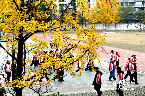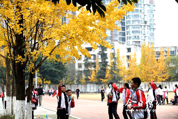 寒冬时节,银杏树叶变黄,金色的银杏叶像片片金箔挂满枝桠,十分惹人喜爱。师生们在有金色银杏树的校园里生活学习,十分惬意。片片银杏叶为冬日校园增加了几分暖意。这是12月9日,记者在绵竹实验学校校园拍摄的学生们在金色银杏树下活动的场景。 与绵竹实验学校校园银杏树一样,为校园冬日增加色彩的还有绵竹中学、绵竹中学初中部、紫岩小学校园等地。 夜晚,片片金色的银杏叶在灯光照射下、或者透过灯光观看银杏叶片,更是别有韵味。