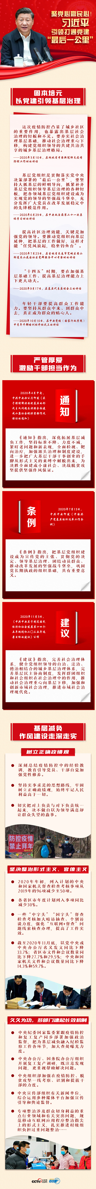 联播+“基础不牢,地动山摇”“党的根基在基层,一定要抓好基层党建”。 截至2019年底,中国共产党党员总数为9191.4万名,党的基层组织468.1万个。治国安邦重在基层,党的工作最坚实的力量支撑在基层,最突出的矛盾和问题也在基层。 2020年,习近平总书记在多个重要会议和考察活动中强调要坚持大抓基层的鲜明导向,把各领域基层党组织建设成为实现党的领导的坚强战斗堡垒。围绕一线“筑垒工程”,党中央出台哪些措施不断增强基层凝聚力?基层减负效果如何?央视网《联播+》栏目特推出长图,与您一起来学习。