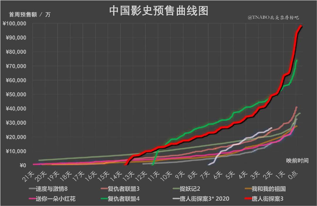 截至2月12日(大年初一)上午10时,据灯塔实时数据,2021年春节档实时预售总票房达15.95亿,《唐人街探案3》以10.54亿创造中国影史单片预售总票房纪录,比前内地影史预售纪录提升29%。