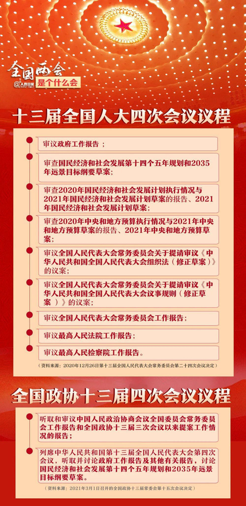 3月,我们将迎来十三届全国人大四次会议和全国政协十三届四次会议的召开。关于全国两会,你知道多少?人大代表怎么产生?什么人可以成为政协委员?2021全国两会有哪些不一样? 戳图了解 ↓↓↓