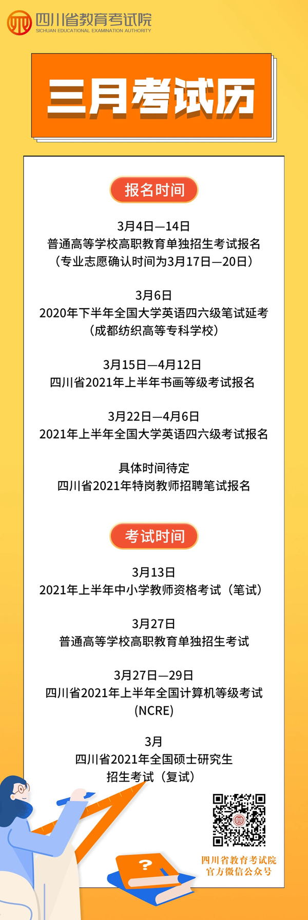 3月2日,省教育考试院发布2021年3月四川教育考试月历,快来看看吧! ↓↓↓