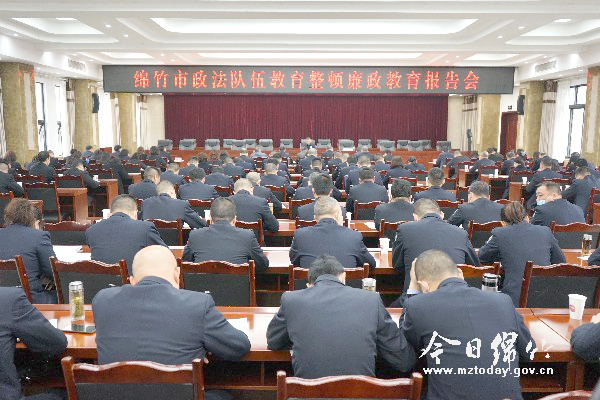报告围绕深刻学习习近平总书记关于党风廉政建设和反腐败的重要论述,从准确把握全面从严治党新形势,正视政法队伍存在的突出问题角度,以案例举证,用事实说话,深刻剖析了政法队伍违纪违法问题的风险点和关键环节,提出了政法系统如何推进全面从严治党、抓好党风廉政建设和反腐败工作的建议,引导广大政法干警知敬畏、存戒惧、守底线,进一步筑牢思想根基。 会议强调,全市政法干警要深入学习廉政教育报告会精神,深刻领会新时代全面从严管党治警战略部署,领会党中央对新形势下反腐败斗争形势的分析判断、决心意志和重点任务,不断加强政法队伍政治理论学习、把握政治本质、站稳政治立场、捍卫政治安全、厚植政治基础、永葆政治本色。要进一步筑牢严格公正文明廉洁执法司法的思想基础,对照“五清”目标要求,紧扣实际,抓好抓实“清廉绵竹”建设,弘扬清风正气、传递清廉能量,努力建设一支信念坚定、执法为民、敢于担当、清正廉洁的政法队伍。各单位要以发生在身边的政法干警反面典型案例为警示,认真开展警示教育,让广大政法干警汲取教训、引以为戒,时刻保持警醒和清醒的头脑,以自身正、自身净、自身硬的良好形象,更好担负起党和人民赋予的新时代职责使命。 市人民法院院长周畅,市人民检察院党组书记、代理检察长徐鹏,市政法队伍教育整顿工作领导成员,全市政法单位班子成员及中层干部参加报告会。