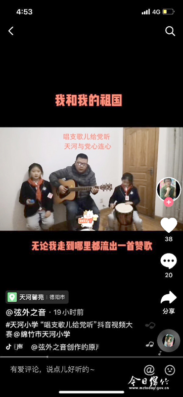 本刊消息 连日来,天河小学开展了“唱支歌儿给党听”抖音视频大赛,号召学生、家长用动听的歌声,歌颂中国共产党成立100年来的奋斗历程和取得的辉煌成就。短短几天时间,学校已收到多个投稿作品,进一步增强了广大学生和家长的爱党爱国情怀。
