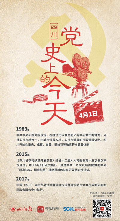 1983年 中共中央和国务院决定,在经济比较发达而又有中心城市的地方,分批实行市地合一,由城市领导农村,实行市管县的行政管理体制。四川开始在重庆、成都、自贡、攀枝花等地实行市管县体制。 2015年 《四川省农村扶贫开发条例》经省十二届人大常委会第十五次会议审议通过,并于6月1日正式施行,这是中共十八大以后首批贯彻中央“精准扶贫、精准脱贫”战略思想的扶贫开发地方性法规。 2017年 中国(四川)自由贸易试验区揭牌仪式暨建设动员大会在成都天府新区政务服务中心举行。