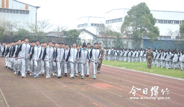 “一二一、一二一,一、二、三、四,稍息、立正……”走进市职中,就听到洪亮的口号声。训练场上,在军训教官的指导下,一列列整齐的队伍正进行着军姿训练。军训以单个军人徒手队列动作为重点,围绕学生早操、内务整理、作风纪律、团结意识四个方面展开训练,严格组训,文明施训。 据市人武部相关负责人介绍,过去,军训由各校自行联系驻绵现役部队或地方培训机构完成。由于辖区内驻军部队少,特别是有时学生军训会赶上驻军部队野外驻训、拉动演习,无法派出训练骨干完成学生军训任务。而地方培训机构不仅收费高,而且人员素质参差不齐,学校支付军训费用压力较大不说,军训效果也没有保障。为破解这一矛盾,今年,市人武部积极配合学校,抽选出军政素质过硬的民兵骨干,义务承担起为市职中新生军训任务,这也是市人武部与学校联合开展军训的一次全新探索。