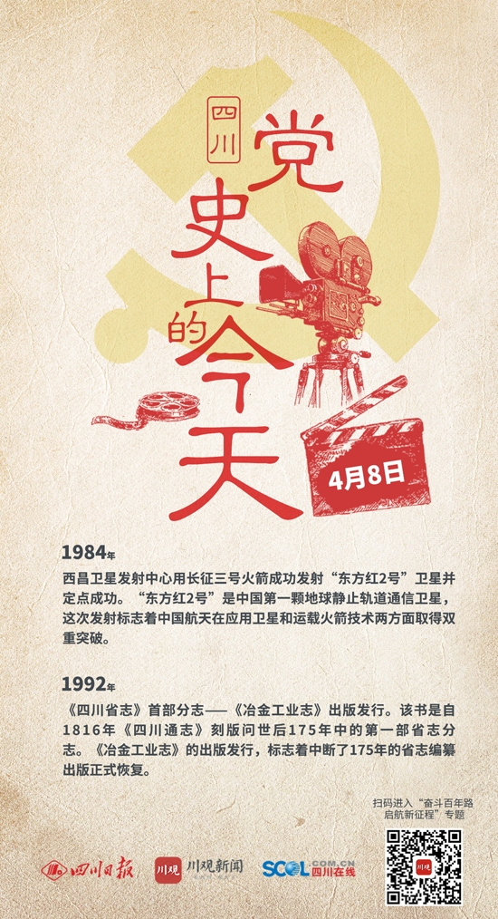 1984年 西昌卫星发射中心用长征三号火箭成功发射“东方红2号”卫星并定点成功。“东方红2号”是中国第一颗地球静止轨道通信卫星,这次发射标志着中国航天在应用卫星和运载火箭技术两方面取得双重突破。 1992年《四川省志》首部分志——《冶金工业志》出版发行。该书是自1816年《四川通志》刻版问世后175年中的第一部省志分志。《冶金工业志》的出版发行,标志着中断了175年的省志编纂出版正式恢复。