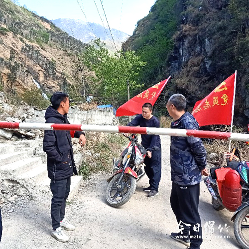 4月3日早上7点,在甘洛县普昌镇眉山村,党员先锋突击队的3名绵竹援彝干部匆匆吃过早饭后,便戴上红袖章,骑上摩托车,奔赴辖区森林防灭火联防联治重点区域,开启新一天的巡山执勤工作。排查火灾隐患、清理枯枝落叶、张贴防火标语、宣传劝导村民……伴随着喇叭鸣笛声和口号声,摩托车巡逻队驶过了家家户户,筑起了森林防火的第一道牢固屏障。