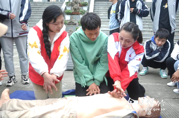 培训会上,红十字会老师们一边详细地讲解,一边标准地演示,同学们专心听讲、认真记录。在实操环节,大家积极参与到心肺复苏的练习当中,红十字会老师或现场示范,或提示要点,或纠正错误动作。20级9班温宝强同学告诉记者,“以前只是看过心肺复苏急救视频,今天能亲身模拟体验一下,感觉非常不错,我又掌握了一项可以救命的新技能,很实用。” “学校是人员最集中、最容易发生紧急事件的场所之一,让师生掌握一定救护知识,提高遇到突发事件的自救和急救能力,最大限度保护师生的生命健康,促进校园安全发展。”该校校长薛昌伟表示,学校还将加大力度普及应急救护知识和技能,切实加强学校安全应急体系建设,不断提升师生安全防范意识和自救互救能力。 (图由绵竹职中提供)