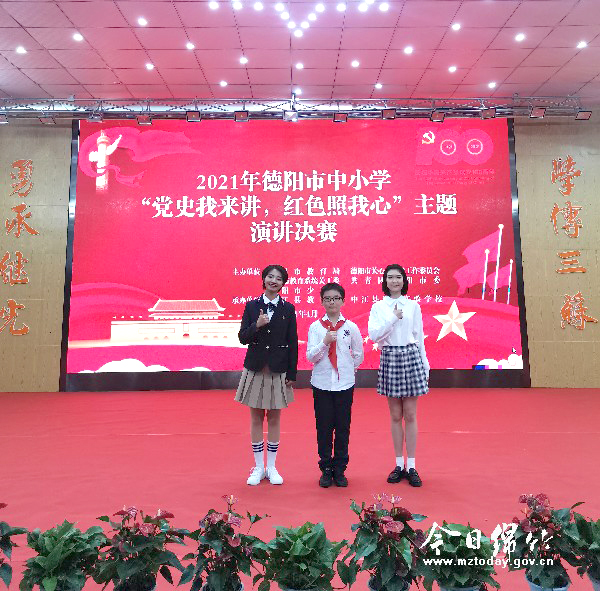 4月29日,德阳市中小学生“党史我来讲 红色照我心”演讲决赛在中江县继光实验学校举行,代表我市参赛的绵竹市紫岩小学校、绵竹中学初中部、绵竹中学3名学生均获得各自组别的一等奖。