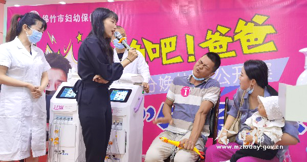 5月20日,市妇幼保健院门诊大厅上演了一场主题为“分娩吧!爸爸”的分娩体验公开赛,吸引了孕妈妈准爸爸和准备生育二孩的夫妇等共30余个家庭参与。