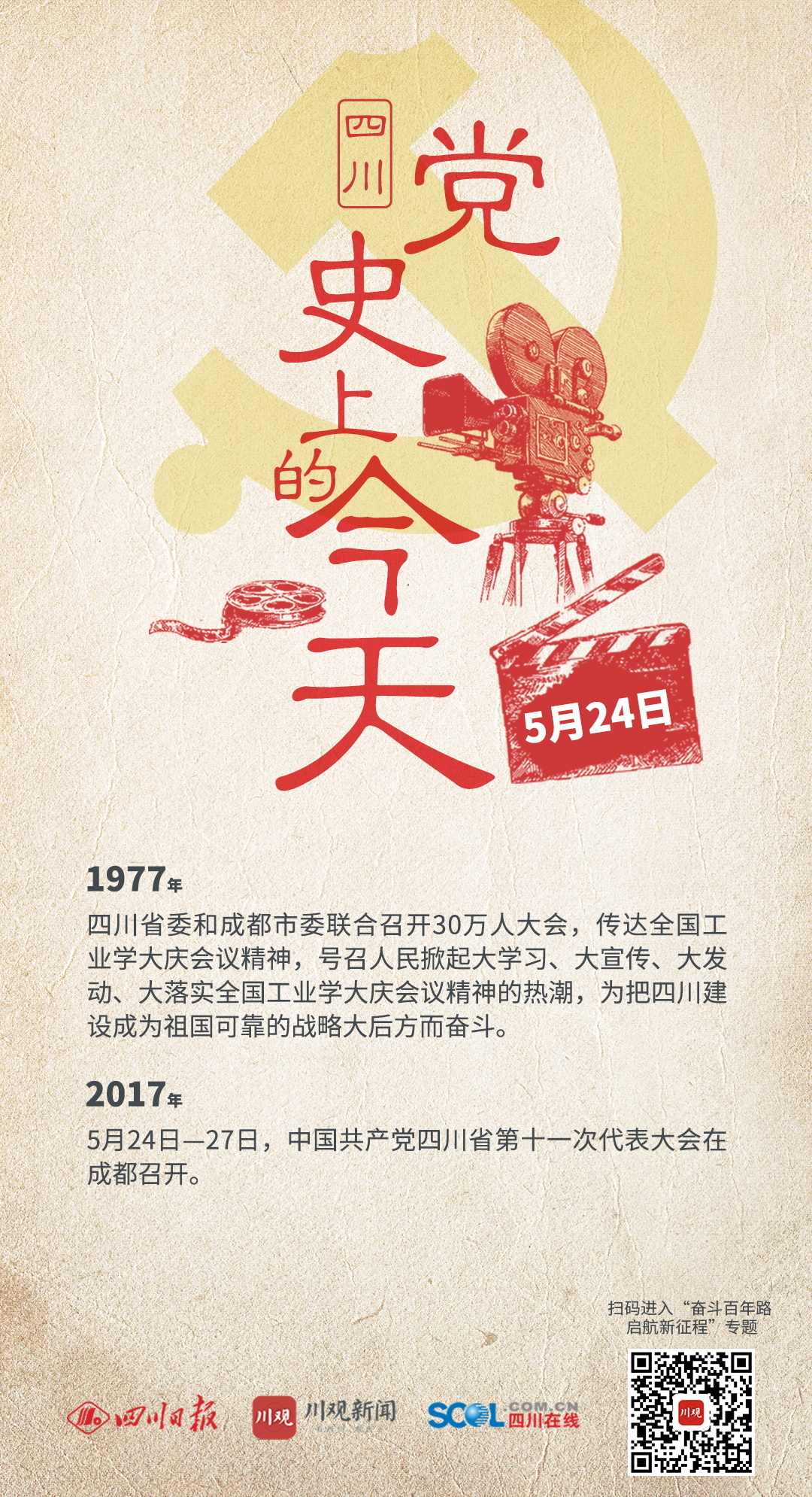 1977年 四川省委和成都市委联合召开30万人大会,传达全国工业学大庆会议精神,号召人民掀起大学习、大宣传、大发动、大落实全国工业学大庆会议精神的热潮,为把四川建设成为祖国可靠的战略大后方而奋斗。 2017年 5月24日—27日,中国共产党四川省第十一次代表大会在成都召开。 (川观新闻记者 袁婧 整理) |