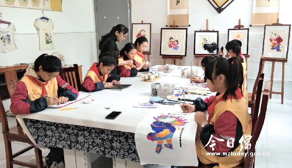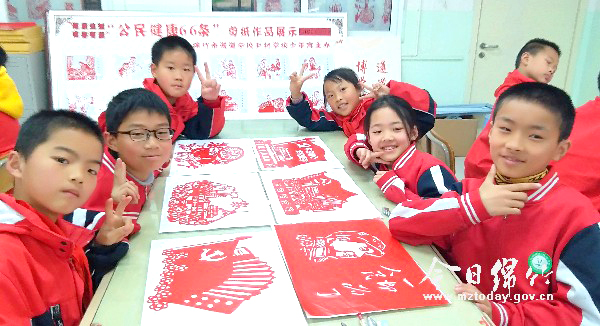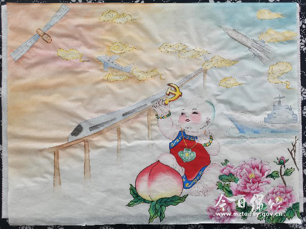 “这是《童子拜寿》,寓意我们少年儿童向党的百年华诞献礼。这幅画是我用绵竹年画中常用的童子、莲、寿桃等内容,加上寓意建党100周年的‘100’字样,使用绵竹年画技法绘出的。”清道学校六年级一班同学苏海蓝告诉记者。 今年“五一”假期间,清道学校的师生没有闲着,他们以绵竹年画为载体,以创新年画描绘百年党史盛世风华,在传承祖国优秀传统文化中,拓展党史育人新途径,彰显学校办学特色。 另外,该校4名年画老师历时1个月,精心创作了《星星之火》《开天辟地》《改革开放》《强国征程》四个年画篇章,以特殊的方式向党的生日献礼。 在剪纸艺术中传承红色基因