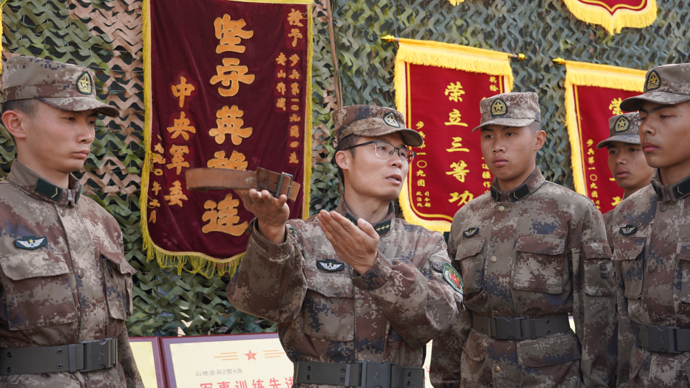 △陆军第75集团军某旅文物陈列室还原红军过草地——“半截皮带”的情景。 △2021年2月1日,陆军第75集团军某旅“坚守英雄连”指导员姜勇军(左二)结合新兵入连仪式讲述“半截皮带”的故事。新华社发(张校尉 摄) △这是陈列在陆军第75集团军某旅“坚守英雄连”荣誉室的“半截皮带”(复制品)。