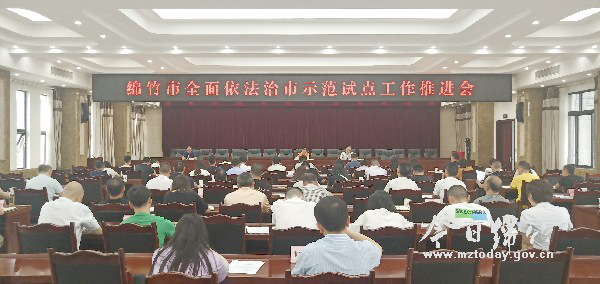 会议要求,一是要统一思想,提高认识。各牵头单位和责任单位必须站在讲政治、讲大局的高度抓紧抓好,确保全面依法治市示范试点工作取得成效。二是要严格责任,狠抓落实。目前示范试点工作已经进行了8个月,时间紧、任务重,要紧盯任务目标,挂图作战、倒排工期、压茬推进。三是要加强协调,总结经验。要各司其职、通力合作,推动示范试点工作提效能、上台阶、创特色。要及时总结工作中的经验成效和特色亮点,不断做大、做强、做优“法治绵竹”品牌。 市级相关部门负责人参加会议。