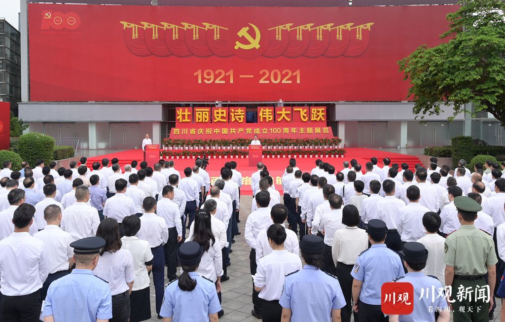 在党的百年华诞即将到来之际,6月26日,以“壮丽史诗、伟大飞跃”为主题的四川省庆祝中国共产党成立100周年主题展览在成都世纪城新国际会展中心开幕。 省委书记彭清华在开幕式上讲话,并带领省级党员领导同志重温入党誓词。西部战区政委吴社洲,党史学习教育中央第八指导组组长、全国人大环境与资源保护委员会副主任委员巴音朝鲁出席。省委副书记、省长黄强主持开幕式,省政协主席柯尊平,省委副书记邓小刚出席。 彭清华在讲话中指出, 四川是一片具有光荣历史和红色基因的热土,一大批老一辈无产阶级革命家、党和人民军队的领导人在四川工作过、战斗过,无数共产党人在这里出生入死、战天斗地,团结带领全川人民顽强拼搏、砥砺奋进,付出了巨大牺牲、留下了不朽记忆、镌刻了崇高精神、树立了伟大丰碑。 本次展览紧扣党的初心使命和百年历史,用一张张照片、一件件文物实物,生动展现了中国共产党在四川的发展历程和党领导四川各族人民推进革命、建设及改革发展取得的辉煌成就,对于深切缅怀革命前辈的丰功伟绩,进一步激励全省各族干部群众坚定理想信念、传承红色基因、发扬斗争精神、焕发革命热情,把革命前辈开创的伟大事业不断推向前进,为全面建设社会主义现代化四川而不懈奋斗,具有十分重要的意义。