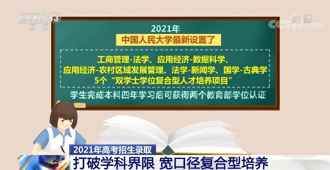 此外,近年来,各高校还积极推行本科生全员导师制,实现本科四年的全程陪伴和全方位指导。 随着社会对复合型人才需求的增强,一些高校也以大类招生为契机,打破学科界限,积极探索宽口径复合型人才培养路径。 今年,中国人民大学最新设置了工商管理-法学、应用经济-数据科学、应用经济-农村区域发展管理、法学-新闻学、国学-古典学5个“双学士学位复合型人才培养项目”,学生完成本科四年学习后可获得两个教育部学位认证。同时,全校各本科专业均实施双选认证制度,各专业制定模块课程,零门槛面向全校学生开放学习,若毕业前达到相关专业辅修培养方案的要求,即可申请认证辅修第二学士学位或辅修第二专业。