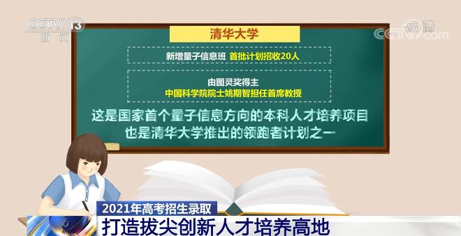 在兰州大学,今年最新成立了材料与能源学院,面向清洁能源等领域的材料新需求培养交叉复合型人才,推动产、学、研、用一体化,将在材料物理、材料化学和功能材料三个专业首批招生100人。 在高考招生中,一些高校还瞄准国家战略需求和社会发展趋势,结合自身学科优势遴选优秀学生,通过量身定制的个性化人才培养方案为国家储备拔尖创新的领军人才。 今年,清华大学新增量子信息班,首批计划招收20人,由图灵奖得主、中国科学院院士姚期智担任首席教授,这是国家首个量子信息方向的本科人才培养项目,也是清华大学推出的领跑者计划之一。近年来,以让优秀学生作为“领跑者”为理念,清华大学已推出十个“学堂人才培养计划”,有涵盖数学、物理学、化学、生命科学计算机等领域的十个班展开招生,均以世界一流科学家领衔,旨在为国家培养基础学科领域里的未来学术领军人才。