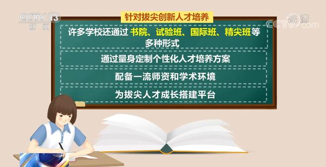 针对拔尖创新人才培养,许多学校还通过书院、试验班、国际班、精尖班等多种形式,通过量身定制个性化人才培养方案,配备一流师资和学术环境,为拔尖人才成长搭建平台。比如,北京科技大学依托优势专业就开设了材料高精尖班和材料国际班。 近年来,通过国家专项、地方专项和高校专项计划等,农村孩子上重点大学有了更多机会。今年,除继续实行这些招生计划外,教育部最新推出“优师专项计划”,一些省份还推出“乡村振兴计划”,巩固拓展教育脱贫攻坚成果同乡村振兴有效衔接。