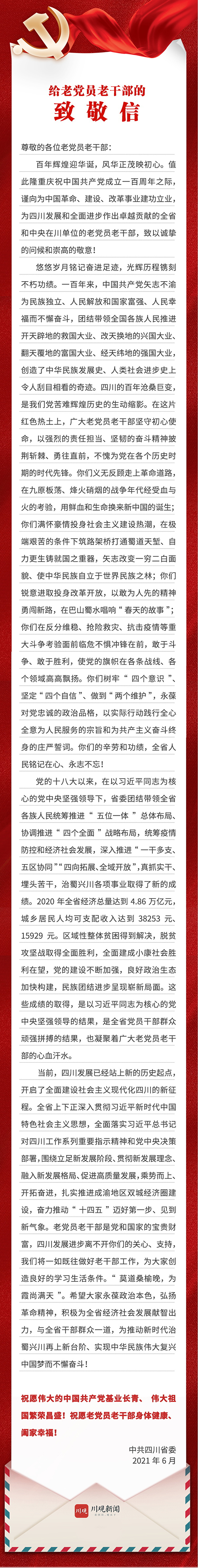 中共四川省委给老党员老干部的致敬信