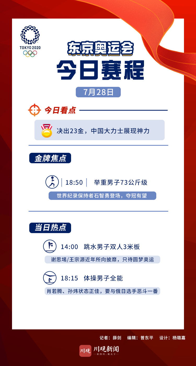 7月28日中国男子大展神威冲击3金【今日赛程】