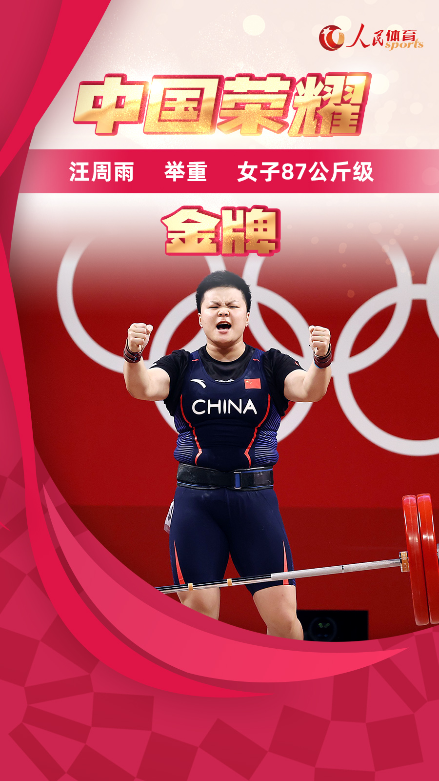 东京奥运会举重女子87公斤级:汪周雨勇夺冠军
