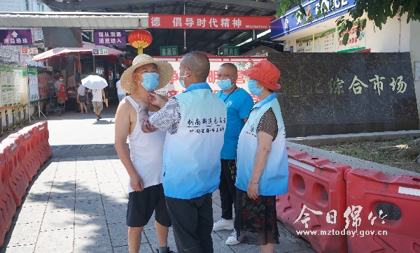 “勤洗手、多通风,人多不要凑热闹,出门记得戴口罩。”8月2日下午,在紫岩街道玉马社区便民服务中心入口处,小喇叭里循环播放着防疫知识,前来办事的群众需要佩戴口罩、测量体温、扫健康码后,才能进入服务中心。记者注意到,在便民服务中心,随处可见绵竹市应对新冠肺炎疫情防控指挥部发布的公告和防疫宣传标语。