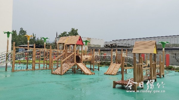 经过一年多的紧张施工,土门学校中心幼儿园分园项目建设已接近尾声,今年秋季开学投入使用。 8月18日上午,记者在土门学校中心幼儿园分园项目现场看到,教学楼彩色的墙面加以绿植和原木色游乐设施设备点缀,给人温馨又明亮的感觉。校园内,数十名工人分工合作,或安装桌椅板凳,或检查消防线路,或打扫清洁、完善装饰细节,现场一片忙碌的景象。