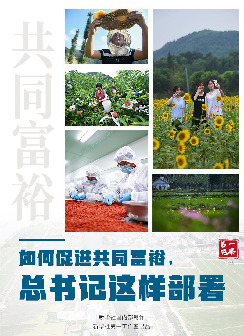 正确处理效率和公平的关系 扎实促进共同富裕,是以人民为中心的发展思想的充分体现。我国将在推进高质量发展的过程中,促进社会公平正义,促进人的全面发展,使全体人民朝着共同富裕目标扎实迈进。 效率与公平,是实现共同富裕必须处理好的一对关系。 会议提出构建初次分配、再分配、三次分配协调配套的基础性制度安排。 这三种分配各有功能,互为补充。初次分配主要由市场机制形成,要坚持多劳多得,也要健全生产要素由市场评价贡献、按贡献决定报酬的机制;再分配主要由政府调节机制起作用;三次分配则鼓励社会力量自愿投入民间捐赠、慈善事业等。 扩大中等收入群体比重,增加低收入群体收入,合理调节高收入,取缔非法收入,形成中间大、两头小的橄榄型分配结构。 会议明确了当下扎实促进共同富裕的几方面重点任务—— 提高发展的平衡性、协调性、包容性,着力扩大中等收入群体规模,促进基本公共服务均等化,加强对高收入的规范和调节,清理规范不合理收入,保护产权和知识产权,促进人民精神生活共同富裕,加强促进共同富裕舆论引导,促进农民农村共同富裕…… 云南省寻甸县金所街道草海子村的农妇在采摘蚕桑叶(2020年5月16日摄,无人机照片)。新华社记者 杨宗友 摄