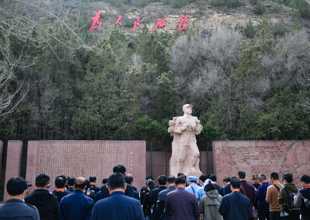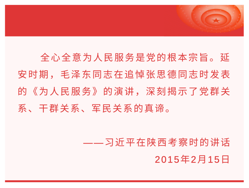 编者按: 历史是最好的教科书。 党的十八大以来,习近平总书记多次到访红色圣地,缅怀革命英烈,讲述红色故事。让我们重温总书记讲述的党史故事,从中汲取前进的智慧和力量。 △2015年2月13日至16日,中共中央总书记、国家主席、中央军委主席习近平来到陕西,看望慰问广大干部群众,向全国各族人民致以新春祝福,祝伟大祖国繁荣昌盛、各族人民幸福安康。这是13日上午,习近平在延安市延川县文安驿镇梁家河村看望村民,并就老区脱贫致富进行实地调研。新华社记者 兰红光 摄 出延安城,车行40公里,便至安塞区高桥镇洛平川村。 山梁环绕,绿树成荫。张思德烈士的雕像,静静矗立,身姿英挺,目光坚毅。不远处,张思德牺牲的炭窑遗址一如昨日,见证世事沧桑。 这是一个无数共产党员耳熟能详的动人故事。 时间的指针倒转回1944年9月5日。清晨,安塞下起了雨。张思德和8名战士一起进入山林,准备挖几孔新炭窑。快到中午时分,炭窑眼看就要挖成,危险却突然而至。 “快出去,有危险!”窑洞顶上的碎土“啪啪”往下落,张思德大喊一声,一把将战友推出窑口。刹那间,两米多厚的窑顶坍塌下来。年仅29岁的张思德,献出了宝贵的生命。 消息传开,山河动容。 “为人民利益而死,就比泰山还重……”毛泽东同志的演讲声言犹在耳,振聋发聩。 年轻的张思德用生命书写了一个普通党员衷心向党、赤诚为民、热爱本职、甘于奉献的本色。