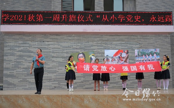 “同学们,夺得了东京奥运会首枚金牌的杨倩,她还是清华大学的优秀学子。她成功的背后,付出了无数的汗水和泪水,她的事迹告诉我们一个道理,努力的人生才会更美。”……记者在现场看到,来自市委组织部的米文颖以“请党放心 强国有我”为主题,通过讲述奥运冠军杨倩、解放军投身抗洪抢险、建党100周年庆祝大会4名领诵员的事迹等一个个精彩励志事例,让全体师生接受了一次生动的爱国主义教育。 “请党放心,强国有我!”五年级(三)班的张乐将内心最诚挚的想法呐喊了出来。他表示,“今天我听了米叔叔的演讲,十分激动,作为少先队队员,我会加倍努力学习,把这种精神用在学习上。” 学党史国史,让孩子们知党爱党,成了不少学校开学第一课的选择。9月1日,川师绵竹附小各班班主任细分主题,为学生们上了别开生面的开学第一课。 “队员们,看我手中的这艘小船......”随着川师绵竹附小四(二)班的学生宣讲员袁睿暄的介绍,全班同学的目光被一艘红船吸引。小小的红船带来了党和祖国的故事,也让同学们感受到中国共产党创立之初的艰难和伟大。随后,老师则深入浅出地讲解了党史知识,通过观看视频、互动问答等方式,师生们共同认识了中国共产党党旗,了解了中国共产党诞生的历史意义。