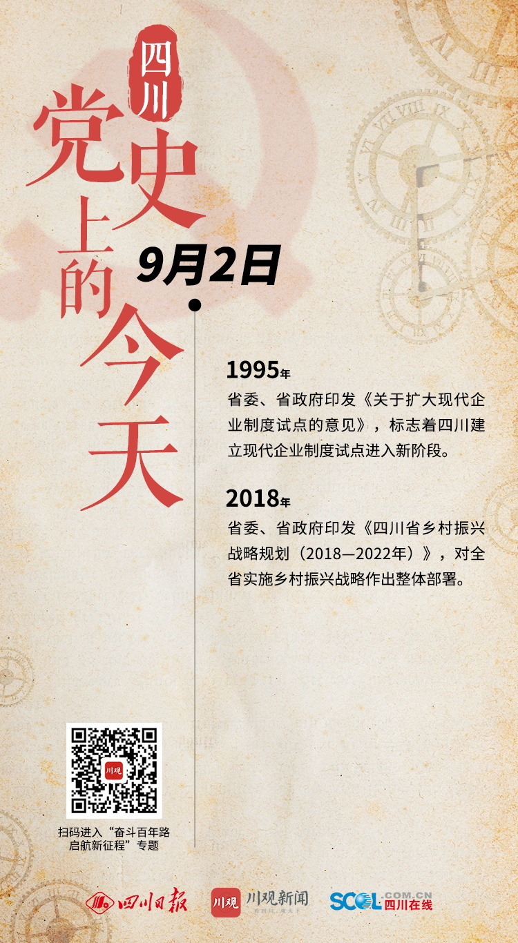 1995年 省委、省政府印发《关于扩大现代企业制度试点的意见》,标志着四川建立现代企业制度试点进入新阶段。 2018年 省委、省政府印发《四川省乡村振兴战略规划(2018—2022年)》,对全省实施乡村振兴战略作出整体部署。 来源:川观新闻 |