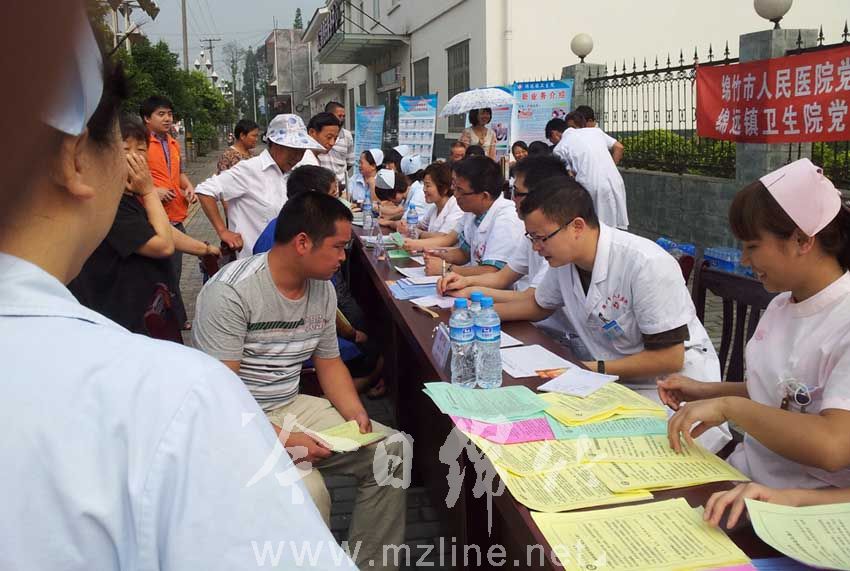 本刊消息 6月23日,正值端午佳节,绵远镇卫生院党支部联合市人民医院党支部,在迎接建党91周年前夕,心系群众,在绵远镇场镇举行了一次联合义诊活动。
