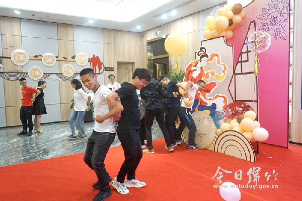 活动现场,气球、鲜花营造出温馨浪漫氛围,60名青年男女欢聚一堂。随着凤凰于飞、纤云弄巧、飞星传爱、花好月圆等游戏的进行,青年男女相互配合运气球、绣香囊、做月饼,在欢快的氛围中进一步增进彼此间的了解。