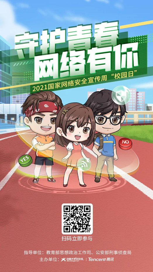 10月11日-17日是2021年国家网络安全宣传周,以“网络安全为人民,网络安全靠人民”为主题,其中10月12日为校园日,快来一起看看有哪些活动吧! 01 全国大学生网络安全知识竞答 10月11日至17日,教育部、公安部指导中国大学生在线、腾讯举办“守护青春 网络有你”全国大学生网络安全知识竞答,通过线上问答普及网络安全知识,提高大学生安全使用网络的能力。学生可通过“中国大学生在线”微信公众号,点击菜单栏“守护青春”,或登录链接(https://res.nobidagu.top/question09/index.html)参与竞答。在竞答中表现优秀的学生经实名认证可领取中国大学生在线颁发的证书及奖品。