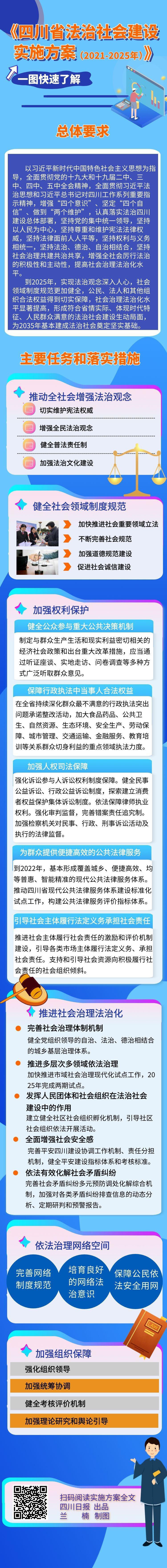 金芮 川观新闻记者 兰楠 10月21日,四川省政府新闻办召开新闻发布会,对《法治四川建设规划(2021—2025年)》和《四川省法治社会建设实施方案(2021-2025年)》进行解读,并回答记者提问。 法治是治国理政的基本方式。当前,我省已经全面开启建设社会主义现代化四川新征程,正处于转型发展、创新发展、跨越发展的关键时期。需要发挥法治固根本、稳预期、利长远的保障作用,把治蜀兴川各项事业纳入法治轨道,营造安全的政治环境、稳定的社会环境、公正的法治环境。对此,省委于近日印发了《法治四川建设规划(2021—2025年)》和《四川省法治社会建设实施方案(2021-2025年)》,开启了全面依法治省新篇章。 据悉,《规划》作为新时代推进全面依法治省的纲领性文件,既对标中央部署,又立足四川实际,有三个方面的特色。 ①明确提出了“建成西部法治新高地”的法治四川建设目标。从维护宪法权威、提升法治水平、优化法治化营商环境、推进城乡基层依法治理、形成法治建设合力等5个维度,对2021-2025年全面依法治省工作作出了全面部署。 ②重点突出了成渝地区双城经济圈法治一体化建设和城乡基层依法治理。聚焦如何更好发挥服务发展、保障民生、维护稳定的法治功能,用了两个专章来布局成渝地区双城经济圈法治建设和城乡基层依法治理。 ③鲜明体现了对治蜀兴川的法治经验总结和制度机制创新。系统总结和承续了党的十八大以来我省法治建设特别是“1+8”示范试点的鲜活经验,将“法治账图”模式、天府中央法务区建设、“法律七进”“全生命周期法律服务清单”等实践证明行之有效的经验做法写入《规划》。 据介绍,《实施方案》的特色亮点在于,聚焦更好满足人民群众对美好生活的向往,从三个方面增强人民群众的法治获得感,为建设“高品质生活宜居地”提供法治护航。 ①强调更好满足人民群众法治需求。提出建立健全跨区域、跨部门、跨系统的守信联合激励和失信联合惩戒机制,持续深化群众最不满意的行政执法突出问题承诺整改活动,探索建立消费者权益保护集体诉讼制度等。 ②强调良法善治提升社会治理水平。着力健全社会领域的制度规范,提出加快推进教育、劳动就业、社会保障、公共卫生、妇女权益保障、食品药品、粮食安全、社会治理等方面的地方立法,同时推动完善市民公约、居民公约、村规民约、行业规章、社会组织章程等社会规范。 ③强调在法治轨道上统筹社会力量、调节社会关系、化解社会矛盾。通过加快推进市域社会治理现代化试点,培育发展法律服务、法治宣传、矛盾调处等法治类社会组织,实施村(社区)“法律明白人”培养工程。
