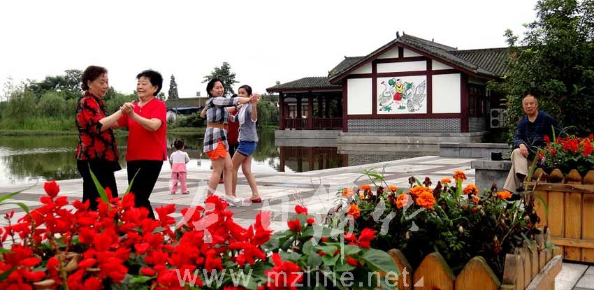 村民在年画村年画湖畔翩翩起舞