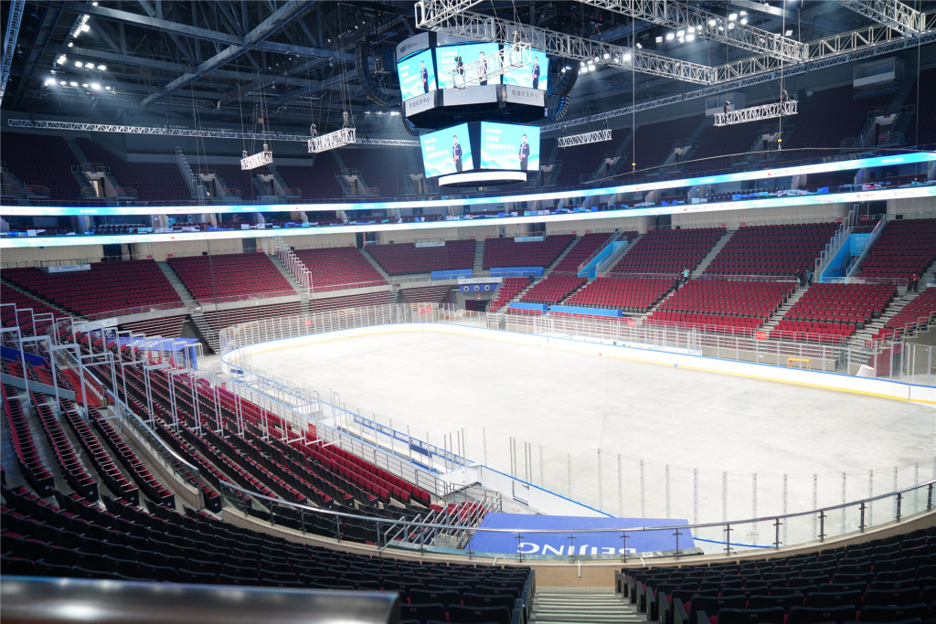 改造完成后的场地 本文图片 澎湃新闻记者 高丹 此外,冰球比赛的冰与其他项目的冰最大的不同就在于冰面的硬度。 花滑比赛的冰要比冰球比赛的硬,而速滑项目的冰是这三项里边最硬的。冰的硬度主要靠温度调节,温度越低,冰就会越硬越脆,相反则更柔和。 每次在赛事开始前夕,制冰师都会邀请专业运动员进行上冰试滑,并根据他们的反馈再对冰面进行调整。