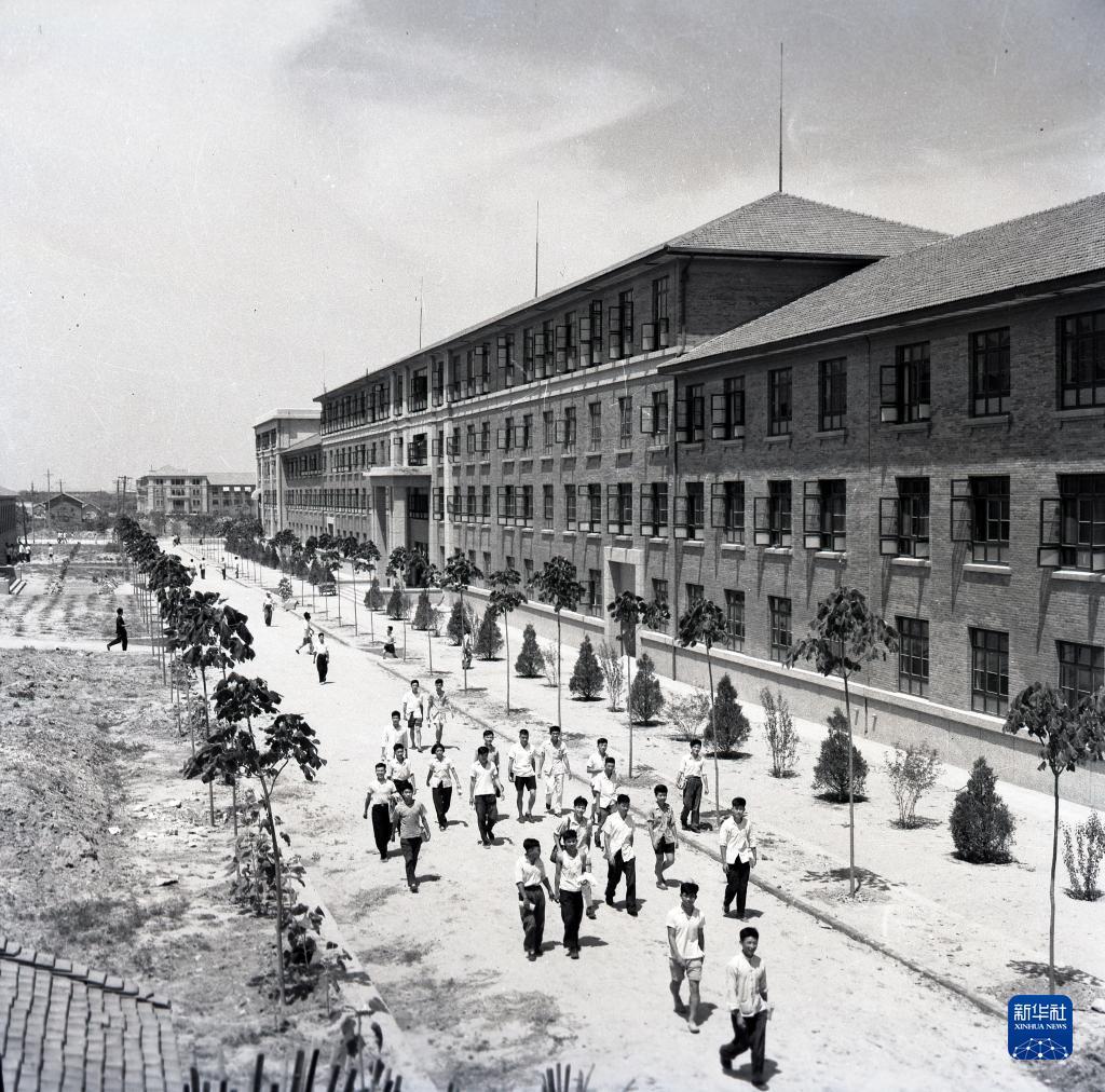 1959年拍摄的西迁后的交通大学校园一景(资料照片)。新华社发 胸怀大局:“党让我们去哪里,我们背上行囊就去哪里!” 新中国成立之初,亟待改变国家积贫积弱的面貌。而工业布局不合理、西部高教力量薄弱,是横亘在国家经济建设面前的两座“大山”。 彼时已在上海创立近一甲子的交通大学,培养出了钱学森、吴文俊、黄旭华等一批杰出人才。 1955年,党中央作出决定:交通大学从上海内迁至陕西西安。 消息传来,振奋的情绪在交大师生间涌动,“党让我们去哪里,我们背上行囊就去哪里!”为建设国家而拼搏开拓的崇高使命,深深吸引感召着老一辈西迁人。1956年,他们义无反顾踏上首批西行的列车。