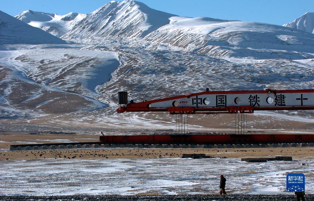 青藏铁路在铺轨建设中(2004年12月5日摄)。新华社记者 觉果 摄 攻坚克难,勇创一流 随着清脆的爆炸声响过,眼前的情景让不少施工人员惊讶:风火山隧道炸出的不是土石,几乎全是冰碴子。 风火山隧道全长1338米,轨面海拔约4900米,全部位于永久性高原冻土层内,这样的地质环境被视为隧道施工的“禁区”。 “高原冻土施工关键在控制温度。温度低了,混凝土无法凝固;温度高了,围岩又会遇热融化,造成洞壁滑塌。”时任风火山隧道掘进队队长任少强说。 在国内外没有成熟经验可直接应用的情况下,广大科技工作者和建设者自力更生、自主创新,创造性地研制了两台大型隧道空调机组,将隧道施工温度精准控制在一定范围内,保证了掘进需要。 浅埋冻土隧道进洞、冰岩光爆、冻土防水隔热……20多项世界性高原冻土施工难题相继被攻克,世界海拔最高的铁路隧道在风火山建成,打破了国外专家“青藏铁路过不了风火山”的预言。 高寒缺氧、多年冻土、生态脆弱,三大世界性工程难题当前,这是一场与恶劣环境的斗争、与技术瓶颈的较量,更是一场精神的淬炼。