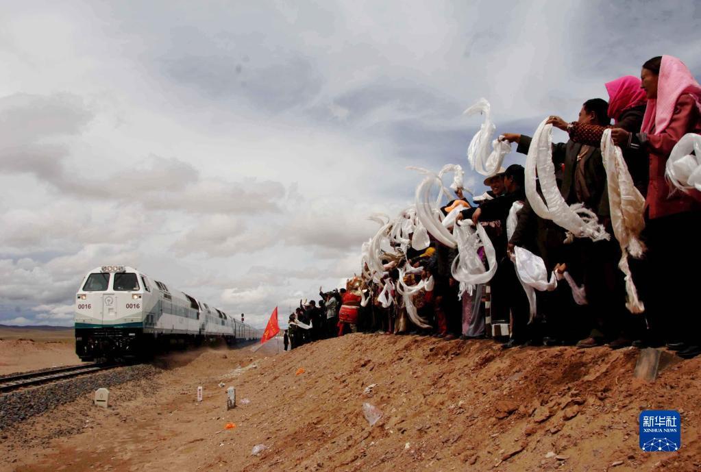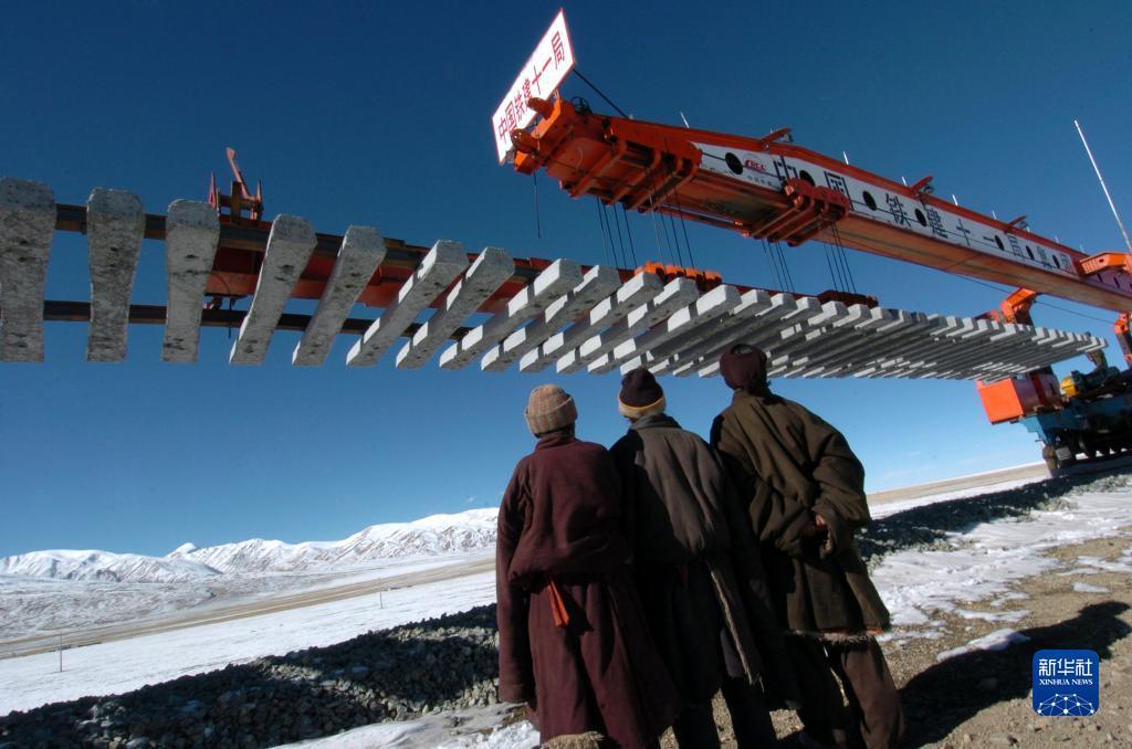 藏族群众观看青藏铁路建设(2004年12月5日摄)。新华社记者 觉果 摄 接续奋斗,再攀高峰 一条“天路”连通雪域内外,一种精神贯穿过去与未来。 在世界铁路最高处——唐古拉地区,养护工人于本蕃自格拉段开通运营以来坚守于此,在“走路都费劲”的环境中,他每天至少走10公里检查作业。十几年如一日,一丝不苟地呵护着每一寸钢轨。“努力成为一枚不惧风雪的铺路石。”于本蕃说。 点亮信号机、扳动道岔,为列车指引前行的方向。作为西藏第一代藏族铁路职工,普桑已经守护“天路”信号设备15载。“青藏铁路造福着我的家乡,能成为这里的一名工人,是我一生的荣耀。”普桑说。 挂头、启动、控速、停车,手比眼看、呼唤应答、途中瞭望。每次出乘,列车司机许宝平都力求让每一个细节无懈可击。十几年来,他早已成为同事们眼中的“标准化作业指导书”。“苦是真苦,但能在青藏铁路上开火车,一切坚守就变得很有意义。”许宝平说。 精神因传承而不朽,一代代铁路建设者以挑战极限、勇创一流之志,开启雪域高原发展的崭新篇章。