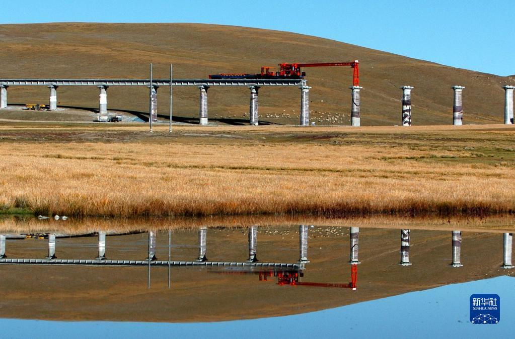 青藏铁路在架桥施工中(2004年资料照片)。新华社记者 觉果 摄 ——战高寒。铁路沿线平均不到10公里就有一座医院,工人生病在半个小时内就能得到有效治疗;在风火山,建成世界上第一座大型高原制氧站,填补了世界高海拔制氧技术的空白……十万大军、五年征战,无一人因高原病死亡。中国工程院院士吴天一说:“这是中国在高原病防治方面创造的一个世界奇迹。” ——斗冻土。铁路沿线连续多年冻土区达550公里。“掌握冻土技术是青藏铁路工程的关键。”时任青藏铁路总设计师李金城介绍说,建设者们反复实验,掌握了铁路沿线多年冻土分布特征和变化规律,确立一套以“主动降温、冷却地基、保护冻土”为技术思想的冻土工程中国模式。 青藏铁路开通运营以来,旅客列车运行时速达100公里,创造了冻土铁路运行时速的世界纪录,其所创新的冻土成套工程技术,被认为是中国铁路对21世纪世界工程建设领域的重要贡献。 ——护生态。为了保护青藏高原脆弱的生态环境,环保工程投资约15亿元;科研人员开展“高原冻土区植被恢复与再造”研究,使铁路用地上的植物试种成活率超70%,比自然成活率高一倍多;全线建立了33个野生动物通道;为了给藏羚羊让道,工程曾两度停工……2008年,青藏铁路格拉段工程获得“国家环境友好工程”奖。 一流的勘察设计、一流的施工技术、一流的工程质量、一流的管理、一流的服务水平……青藏铁路以众多的“一流”绘就了世界铁路建设史上的奇迹。 “建设大军以惊人的毅力和科学的态度,战胜了各种难以想象的困难,实现了建设世界一流高原铁路的目标。”中国铁道学会理事长卢春房说。