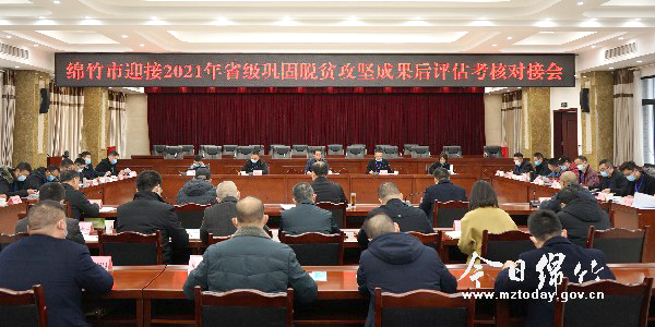 12月13日下午,我市召开迎接2021年省级巩固脱贫攻坚成果后评估考核对接会。会议听取了我市巩固脱贫攻坚成果工作情况汇报,并就此次评估考核工作进行安排部署。省巩固脱贫攻坚成果后评估考核组组长、安岳县人大常委会副主任曾正伟,绵竹市委书记王宏,市委常委、组织部部长李长英,市人大常委会副主任张丽珂参加会议。
