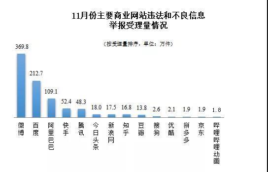 11月全国受理网络举报1375.4万件,微博受理量占四分之一